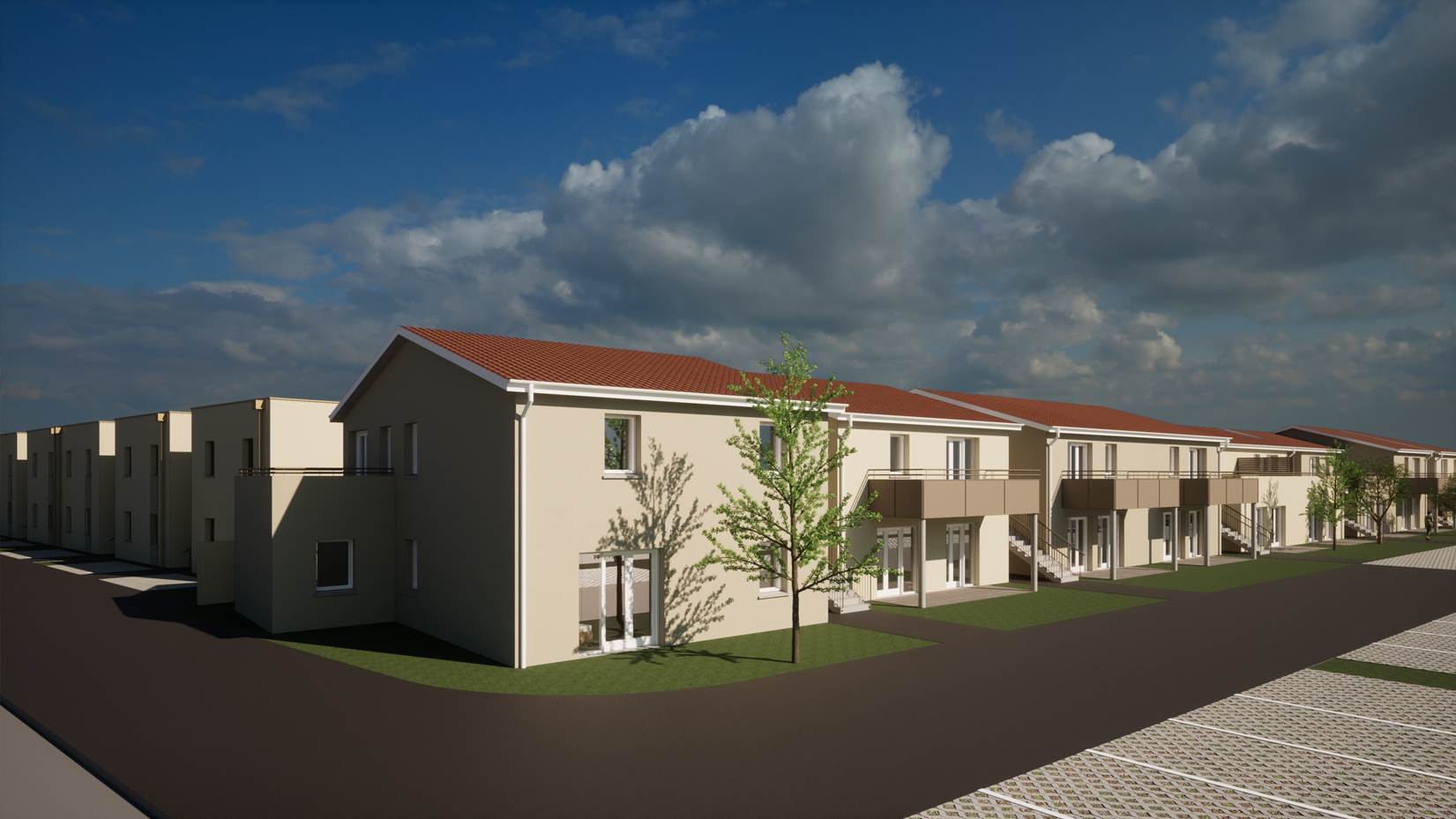 Cette opération de construction de logements collectifs et de logements individuels, réalisée en co-traitance avec le Cabinet Daher Architecture, consiste à apporter du logement collectif et des logements individuels sur un territoire à densifier. Les logements sont conçus dans le respect des règles d’urbanisme, des normes PMR, du Code Civil et autres demandes urbaines. Le tout étant de proposer des logements de qualité en lien avec un extérieur paysager, tout en conservant les services de proximités apportés par la ville.