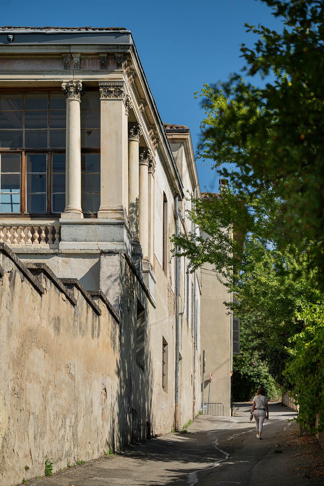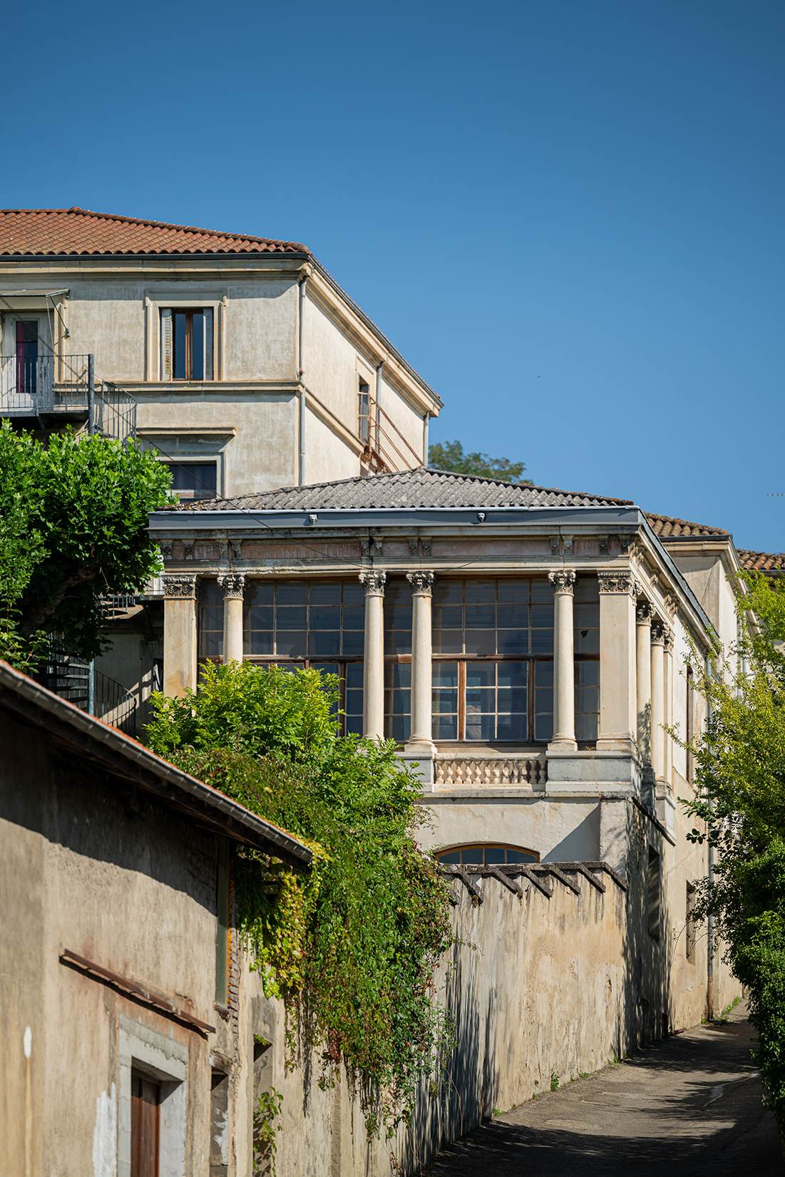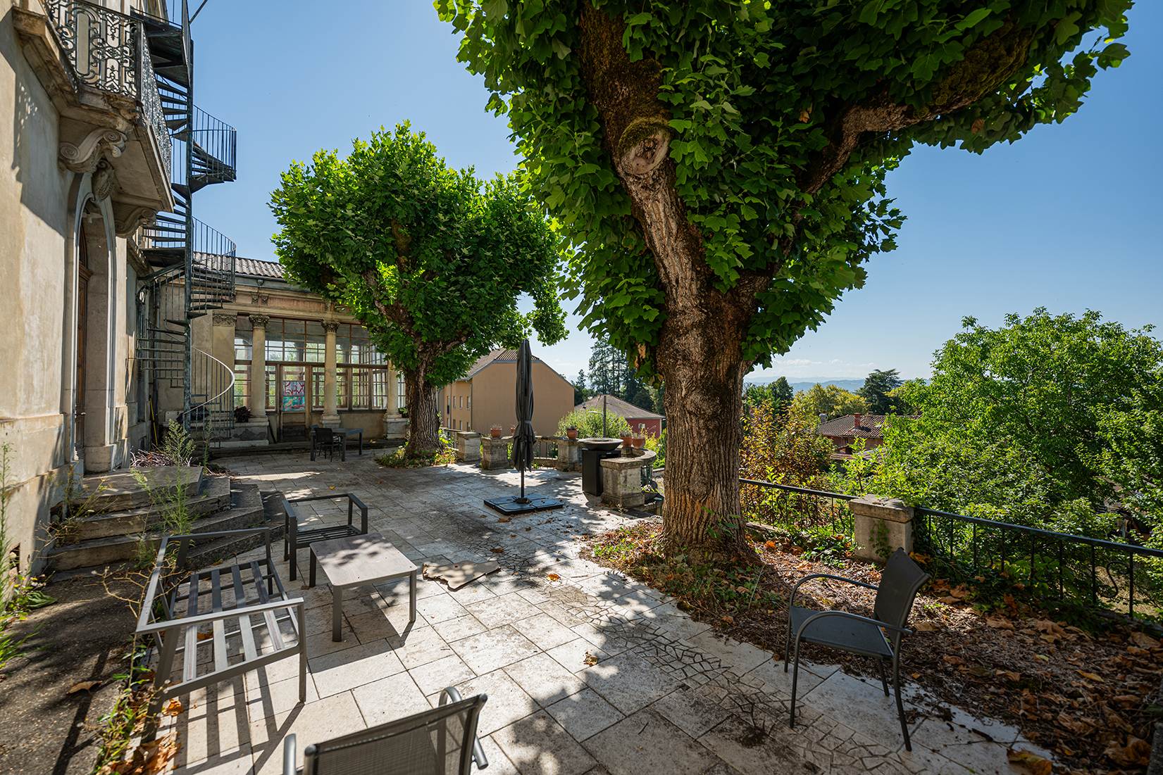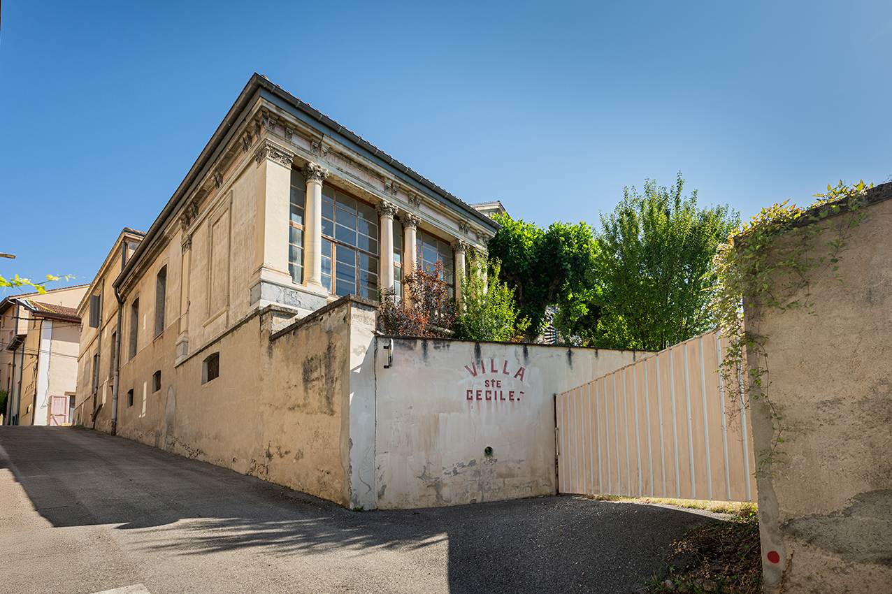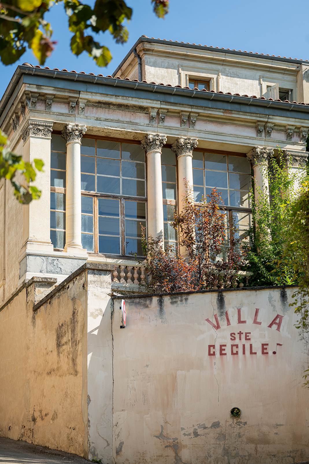 Cette magnifique bâtisse, appelée la Villa Sainte Cécile à La côte Saint André, est édifiée à la fin du XVIIIème siècle par l’Architecte Alfred Berruyer, de style néoclassique, pour le compte de la famille Rocher, productrice de liqueurs. La Villa a tantôt été une boutique de liqueurs, tantôt une école publique, un orphelinat, puis a accueilli des logements et enfin des diverses activités culturelles. Elle s’établit sur quatre niveaux, possédant chacun d’autres demis-niveaux. Elle fait corps avec le fort dénivelé du terrain naturel l’environnant (environ 8m de déclivité). De nos jours, ses propriétaires actuels, portent un beau projet qui permettra à la Villa Sainte-Cécile de lui écrire une nouvelle histoire, à caractère humanitaire et ouvert sur la ville.
