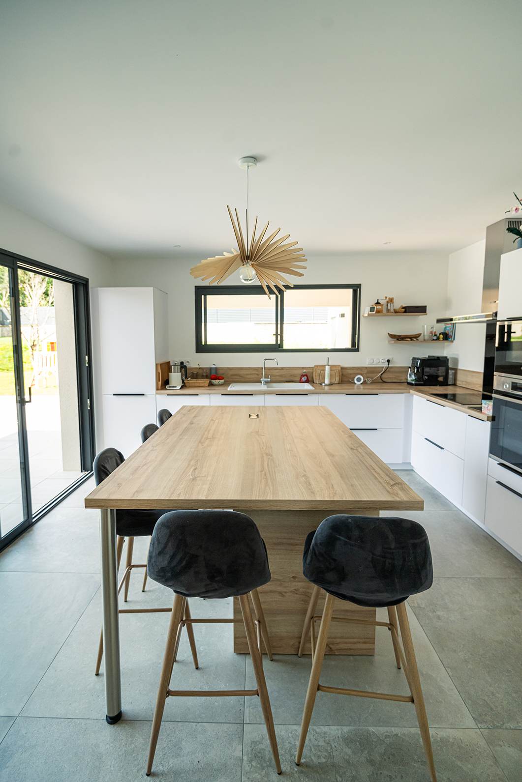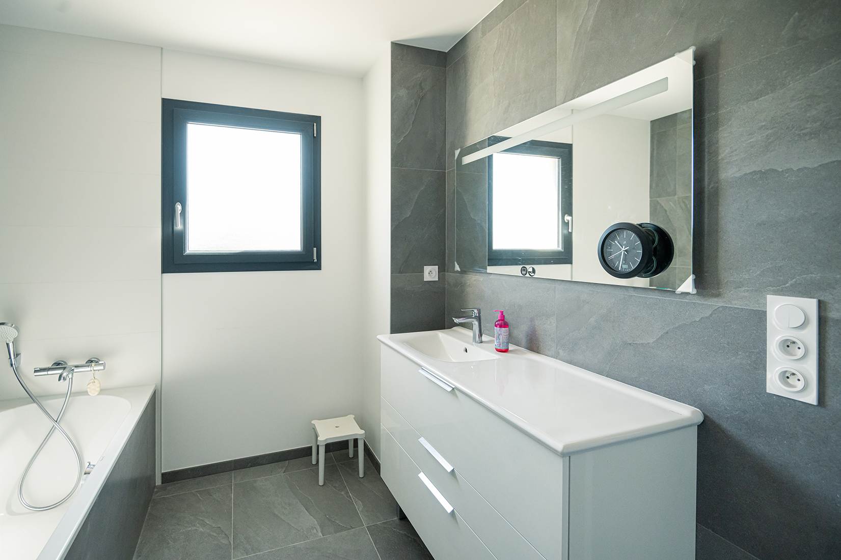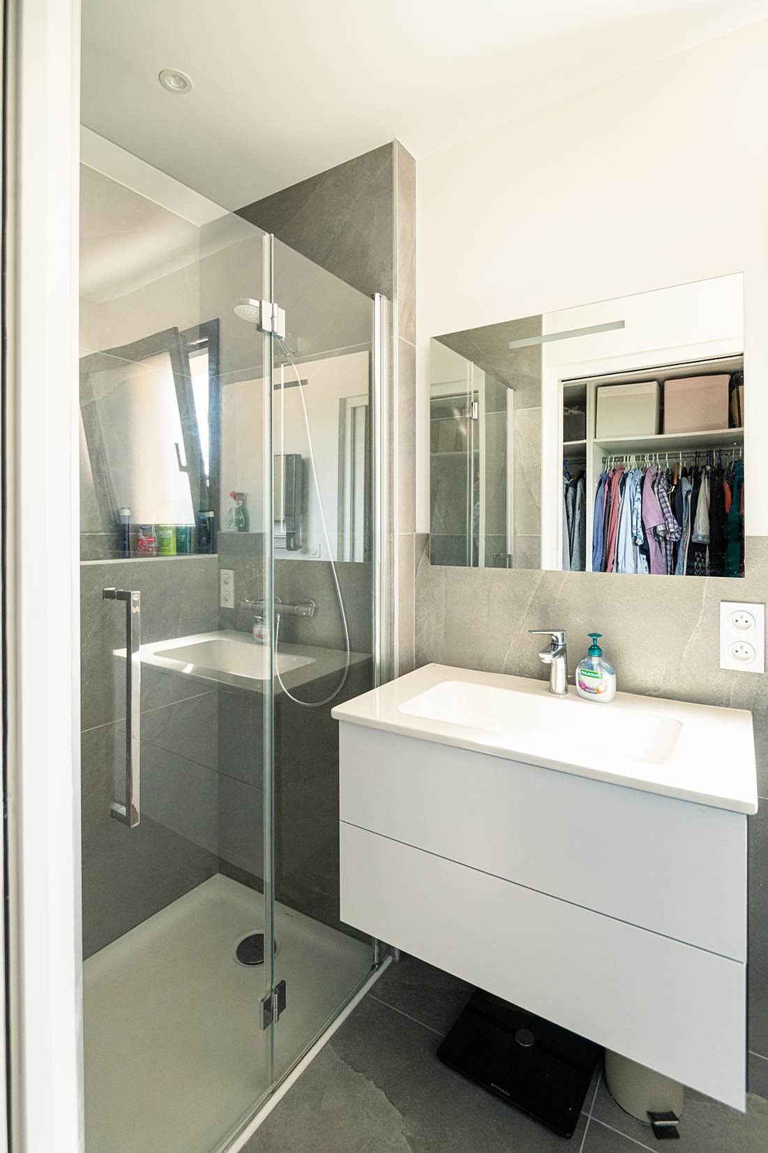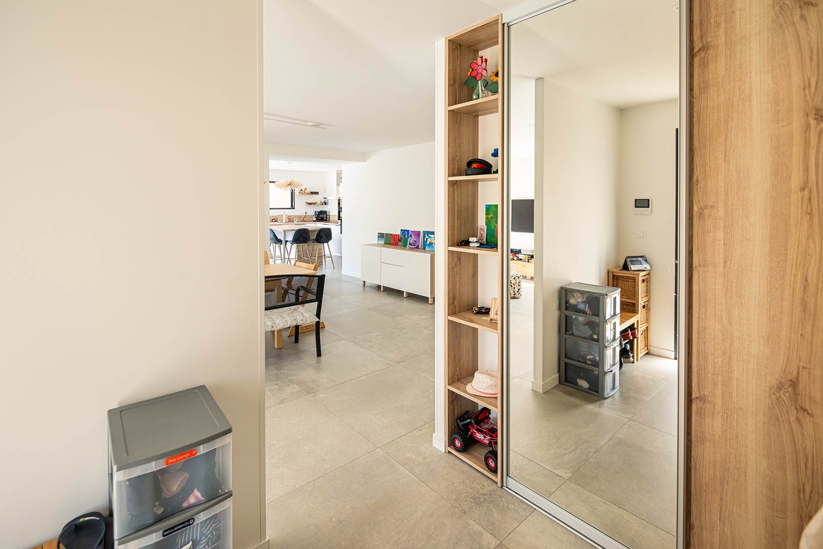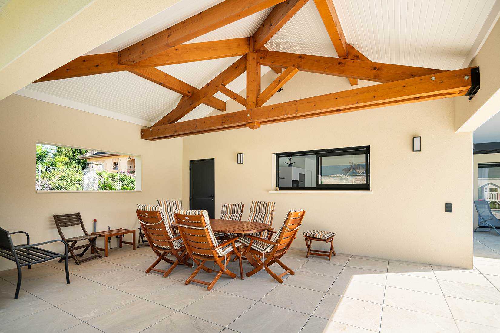 Ce projet de construction de maison individuelle compose une architecture qui apporte un grand confort de vie, une grande luminosité au sein de la maison et qui s’ouvre largement sur la vie extérieure. Les espaces sont généreux afin d’abriter une grande famille. Les nombreux rangements, tant au sein de la maison, avec les nombreux placards et pièces de rangements annexes, qu’à l’extérieur, à travers plusieurs locaux qui peuvent abriter le mobilier extérieur, garantissent un confort de vie pratique et paisible. Les nombreuses chambres et salles de bains permettent d’accueillir confortablement tous les habitants de cette maison y compris les occupants temporaires. Les volumes cette maison s’adaptent ainsi à ce terrain possédant une légère déclivité et optimisent au maximum les espaces de vie autant à l’intérieur qu’à l’extérieur. Les espaces annexes, tels que le garage et la terrasse couverte, sont également généreux de façon à répondre à tous les besoins. Le bassin de la piscine participe également à ce confort de vie et cette sérénité que propose cette architecture contemporaine.