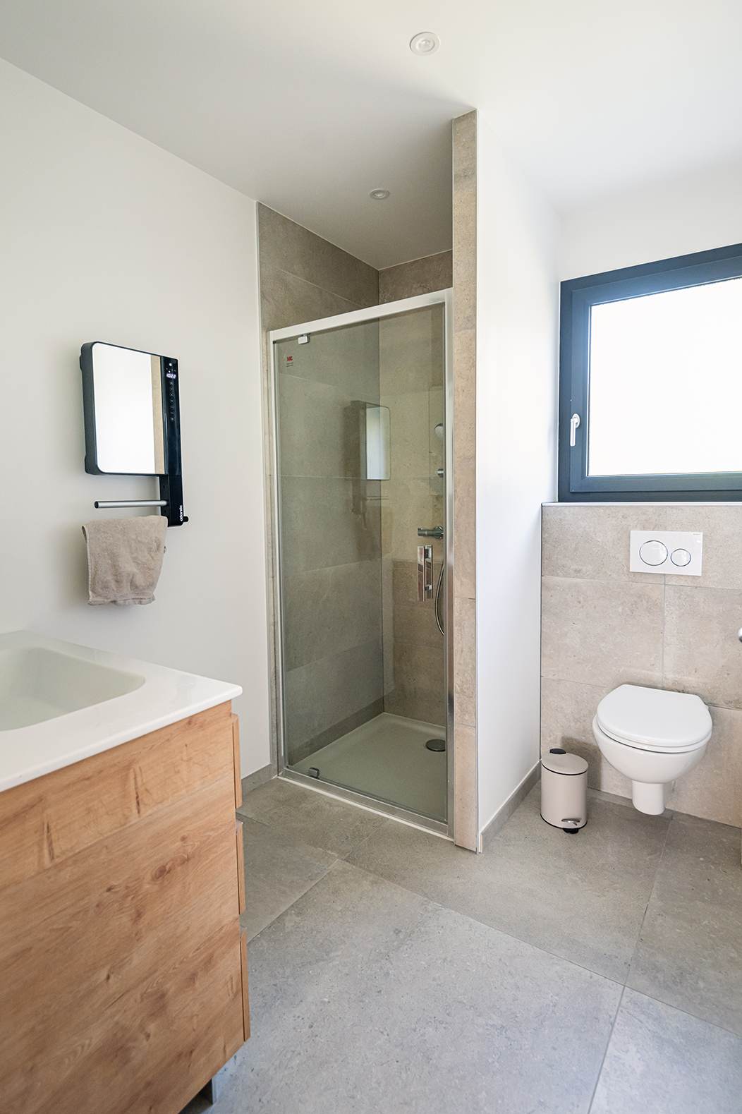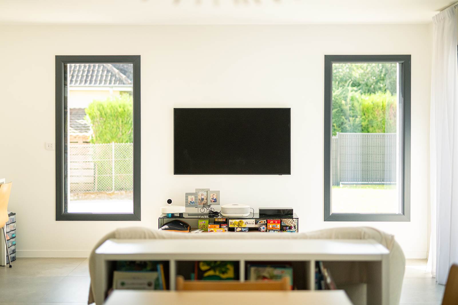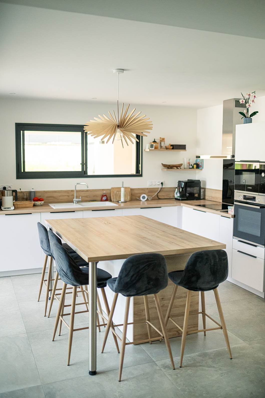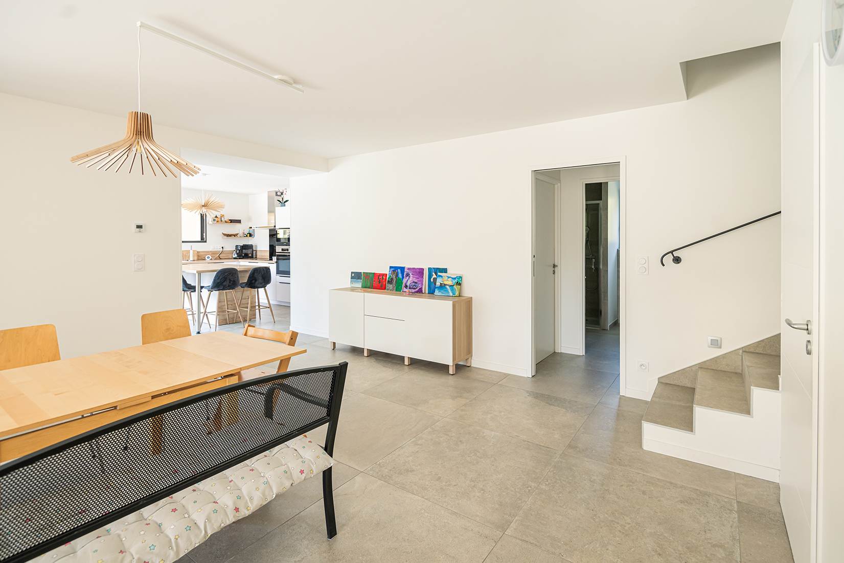 Ce projet de construction de maison individuelle compose une architecture qui apporte un grand confort de vie, une grande luminosité au sein de la maison et qui s’ouvre largement sur la vie extérieure. Les espaces sont généreux afin d’abriter une grande famille. Les nombreux rangements, tant au sein de la maison, avec les nombreux placards et pièces de rangements annexes, qu’à l’extérieur, à travers plusieurs locaux qui peuvent abriter le mobilier extérieur, garantissent un confort de vie pratique et paisible. Les nombreuses chambres et salles de bains permettent d’accueillir confortablement tous les habitants de cette maison y compris les occupants temporaires. Les volumes cette maison s’adaptent ainsi à ce terrain possédant une légère déclivité et optimisent au maximum les espaces de vie autant à l’intérieur qu’à l’extérieur. Les espaces annexes, tels que le garage et la terrasse couverte, sont également généreux de façon à répondre à tous les besoins. Le bassin de la piscine participe également à ce confort de vie et cette sérénité que propose cette architecture contemporaine.