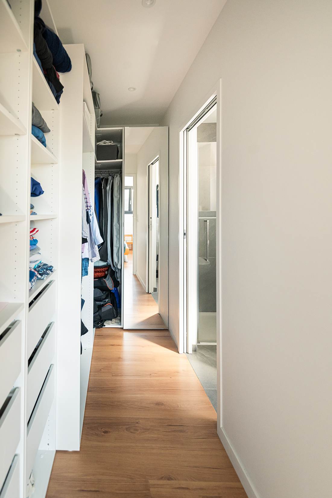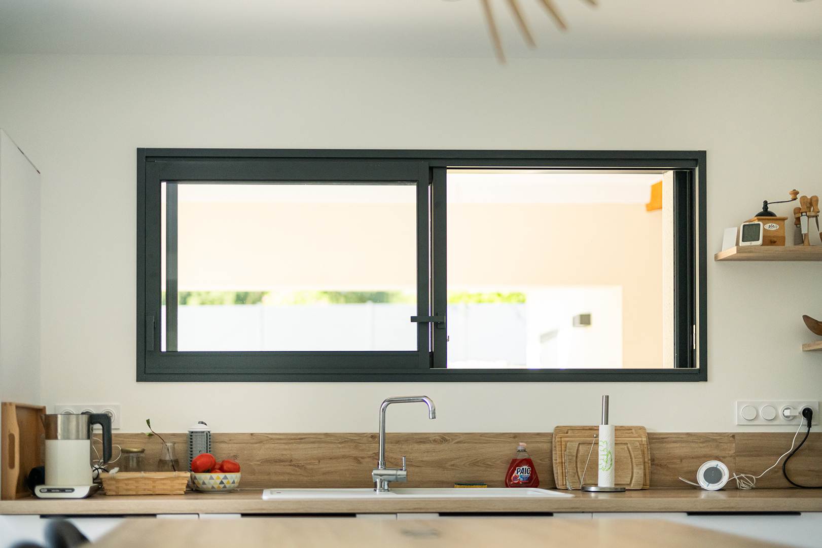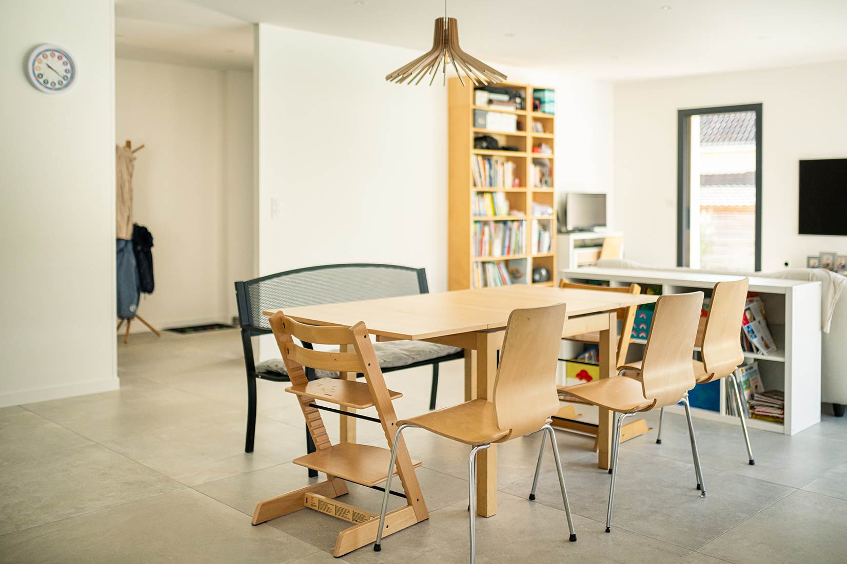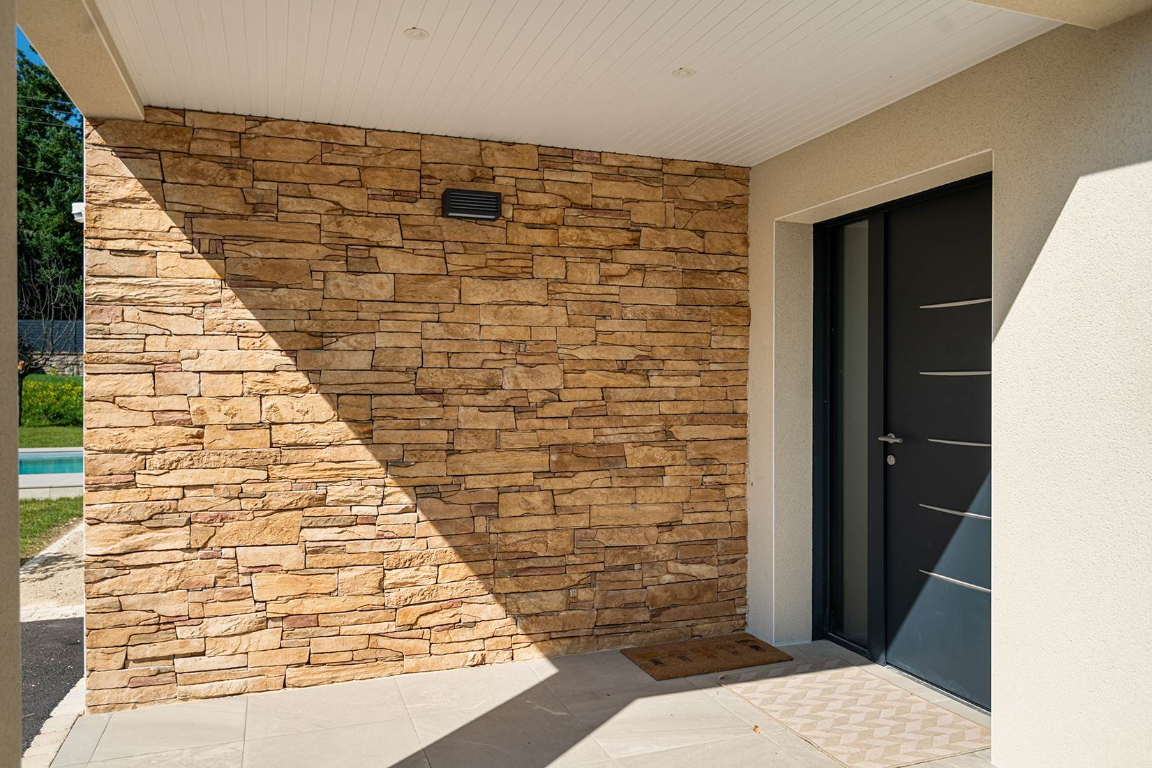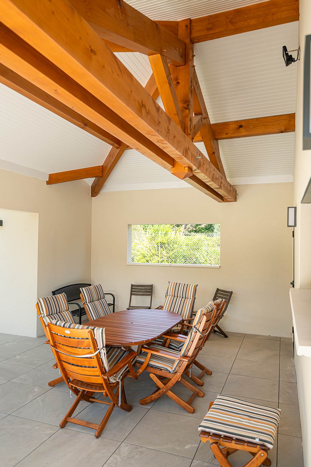 Ce projet de construction de maison individuelle compose une architecture qui apporte un grand confort de vie, une grande luminosité au sein de la maison et qui s’ouvre largement sur la vie extérieure. Les espaces sont généreux afin d’abriter une grande famille. Les nombreux rangements, tant au sein de la maison, avec les nombreux placards et pièces de rangements annexes, qu’à l’extérieur, à travers plusieurs locaux qui peuvent abriter le mobilier extérieur, garantissent un confort de vie pratique et paisible. Les nombreuses chambres et salles de bains permettent d’accueillir confortablement tous les habitants de cette maison y compris les occupants temporaires. Les volumes cette maison s’adaptent ainsi à ce terrain possédant une légère déclivité et optimisent au maximum les espaces de vie autant à l’intérieur qu’à l’extérieur. Les espaces annexes, tels que le garage et la terrasse couverte, sont également généreux de façon à répondre à tous les besoins. Le bassin de la piscine participe également à ce confort de vie et cette sérénité que propose cette architecture contemporaine.