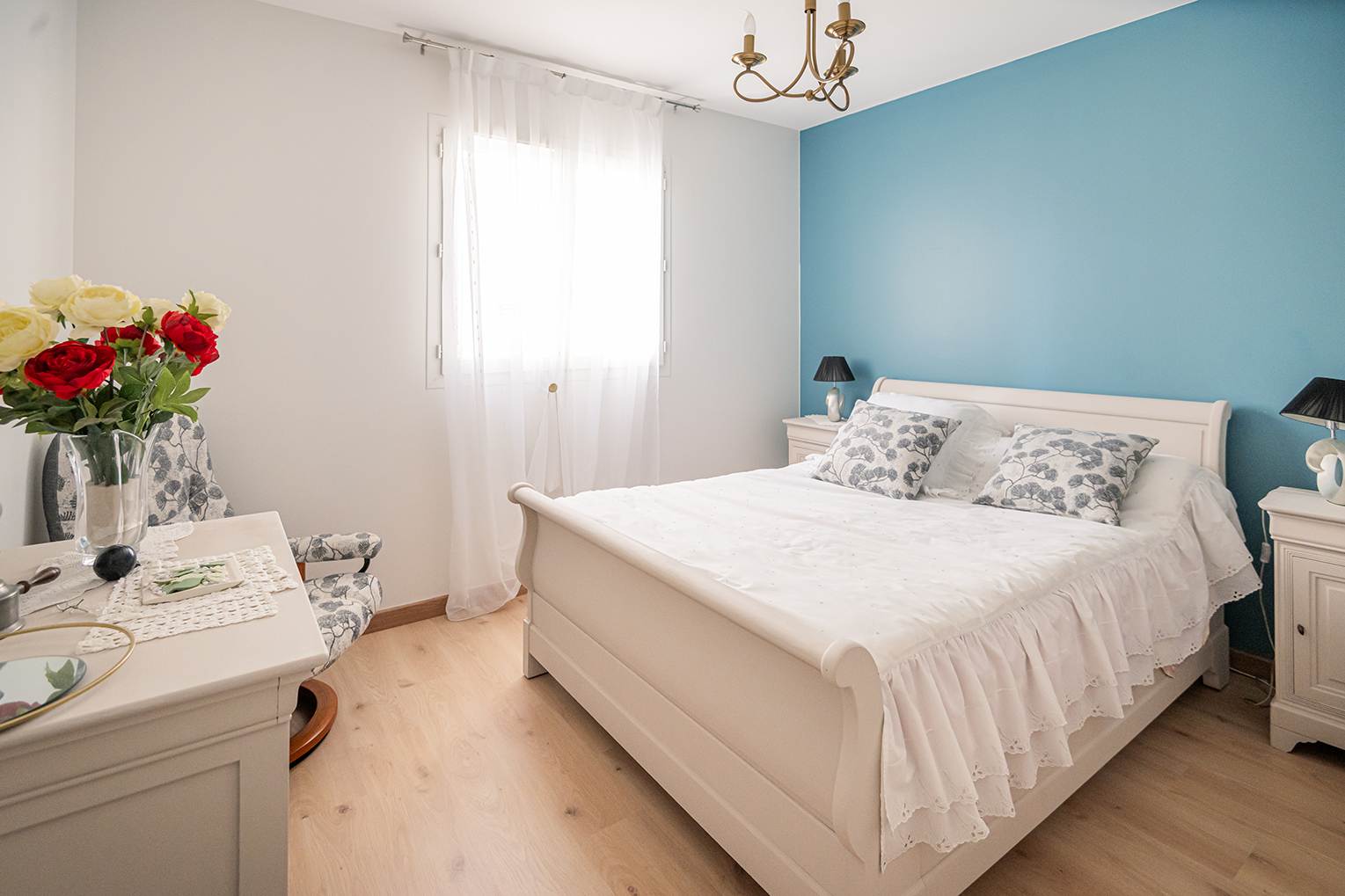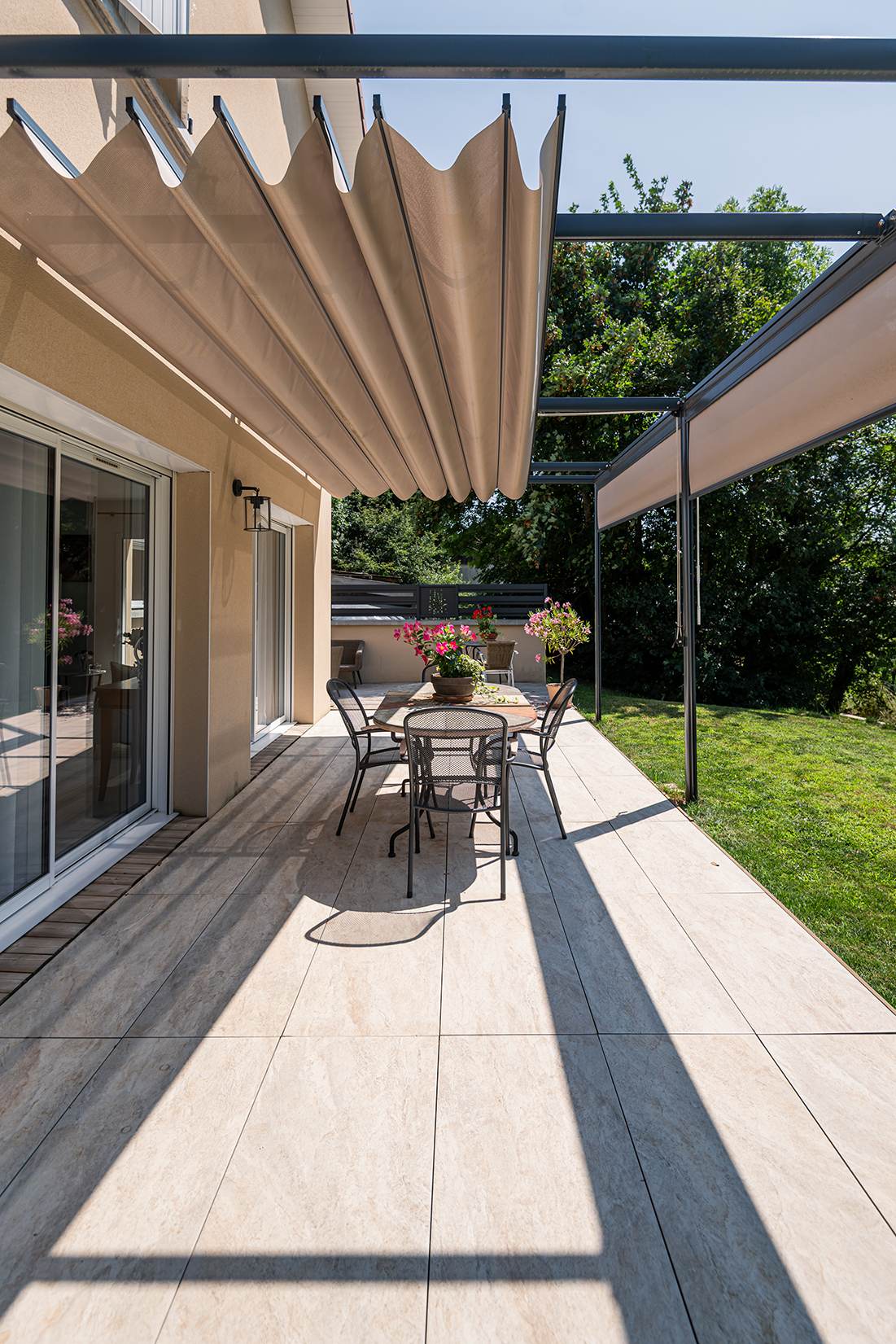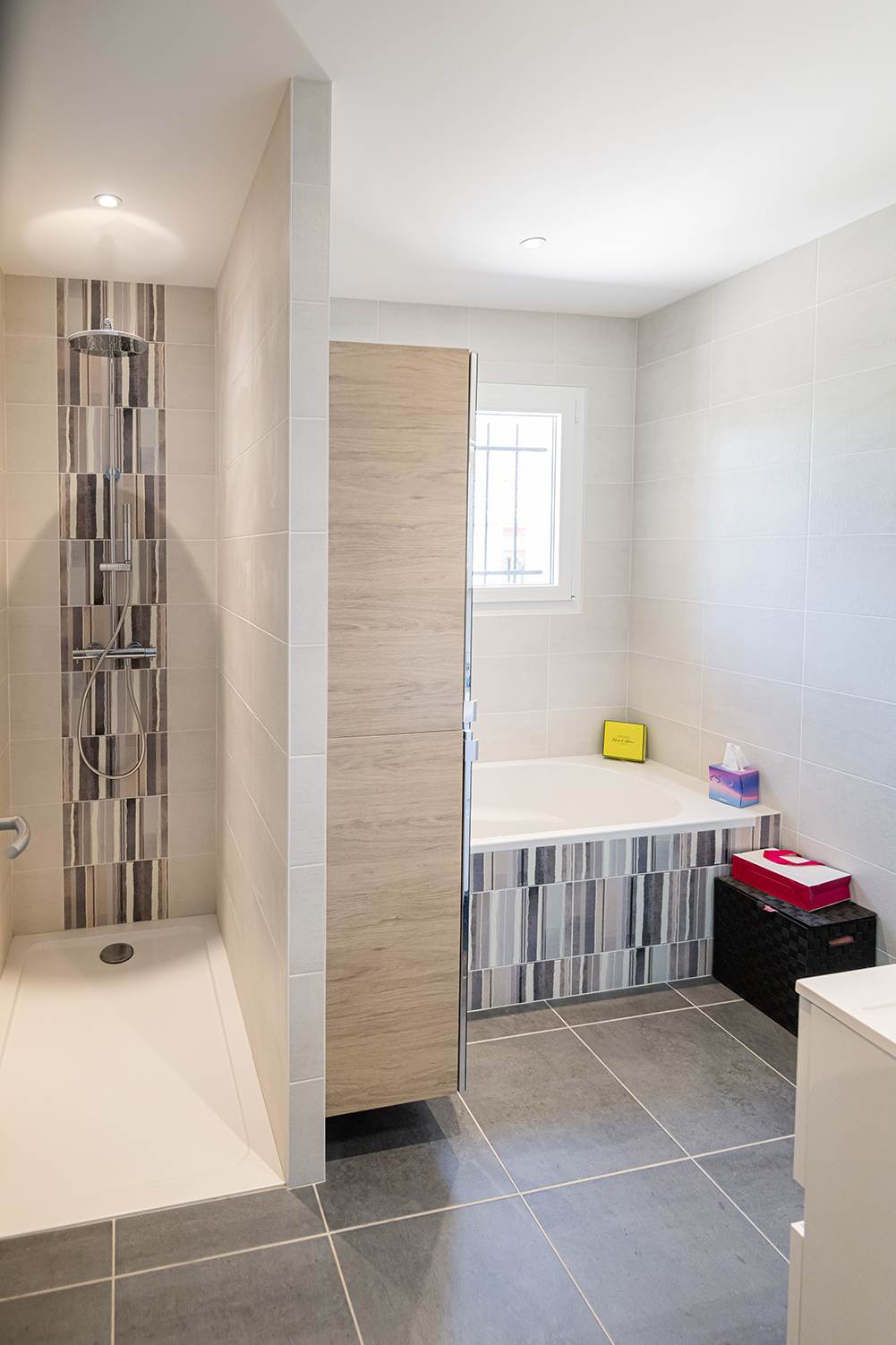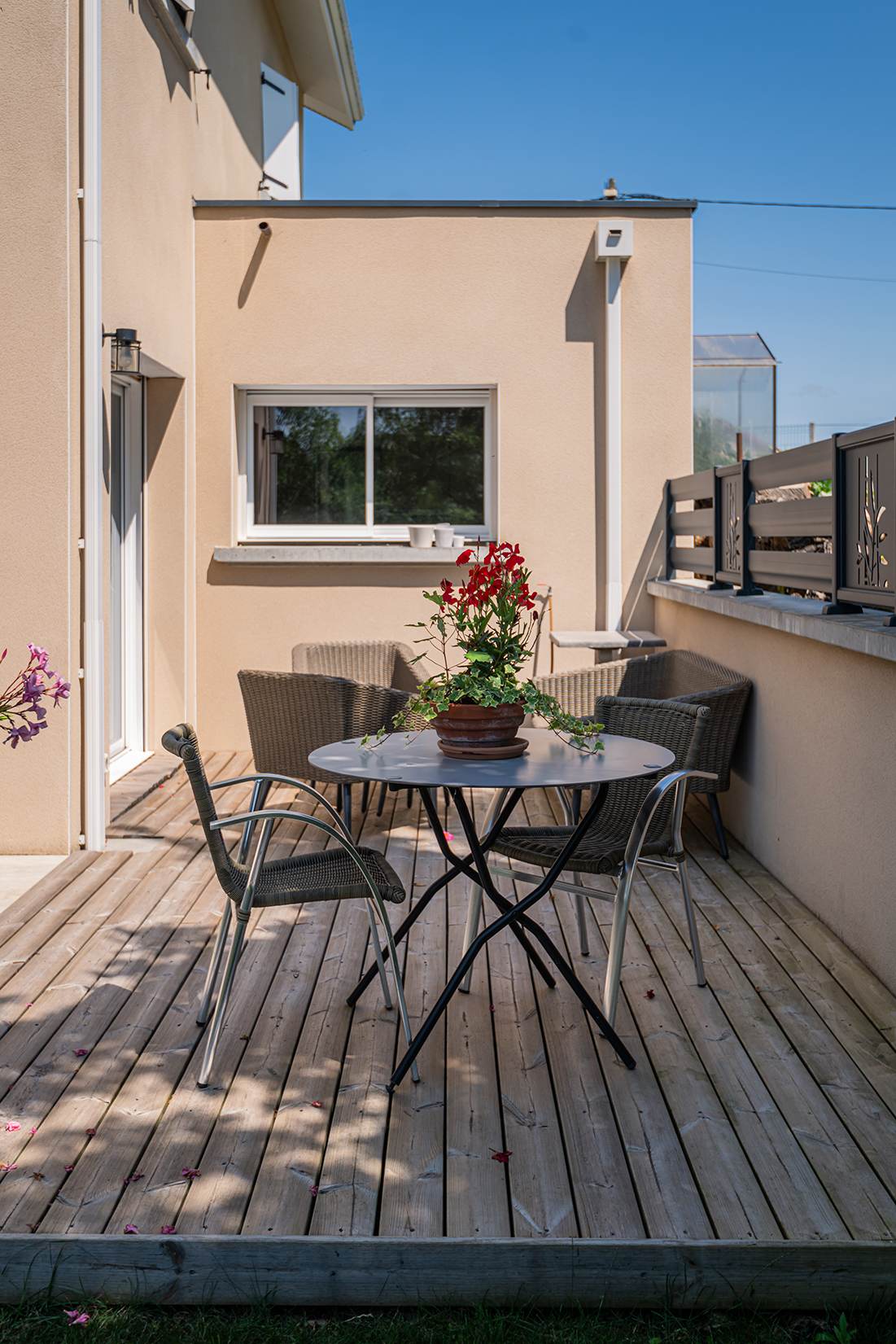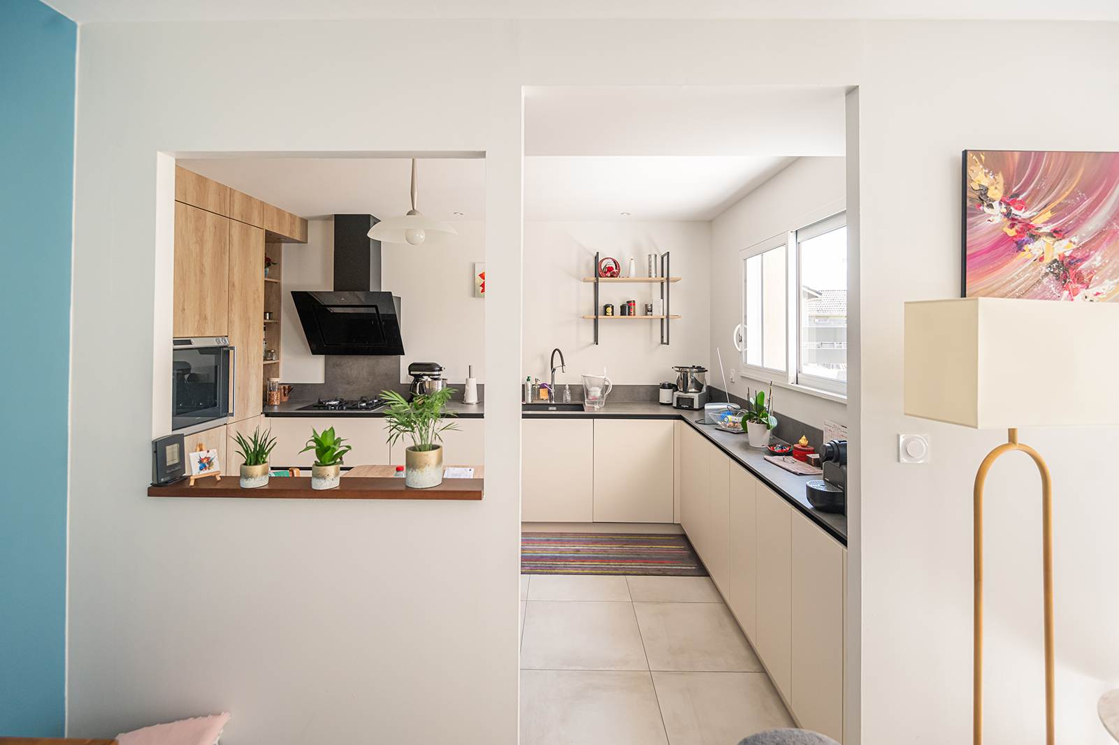 Ce projet de construction de maison individuelle s’ajuste ici parfaitement à la petite surface de ce terrain constructible. Entre la pente du terrain, une zone non constructible, une voie d’accès commune à une maison existante, ainsi que l’installation sur le terrain d’un assainissement individuel pour ce projet, la surface constructible possible pour cette maison était très limitée. Le projet exploite également toutes les possibilités urbanistiques afin d’optimiser les volumes construits. Cette habitation d’une centaine de mètres carrés se développe ainsi sur deux niveaux. Le garage en demi-niveau par rapport à l’habitation s’adapte à la déclivité du site. Les pièces nobles s’orientent principalement face aux orientations lumineuses et s’ouvrent également à la belle vue que possède ce terrain en pente. Les ouvertures de cette maison préservent également au maximum l’intimité de cette petite habitation afin de garantir un minium de vis-à-vis avec l’accès commun ou les parcelles avoisinantes.